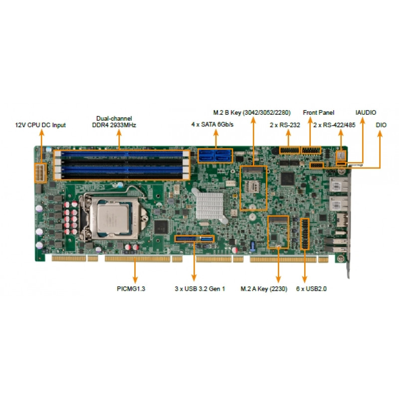 PICMG 1.3 CPU Card supports 14nm LGA1200 Intel® 10th/11th Gen Core™ i9/i7/i5/i3, Celeron® and Pentium® processor with Intel® Q470E, DDR4, HDMI, DP, Dual Intel® 2.5 GbE, USB 3.2, SATA 6Gb/s, M.2 and RoHS