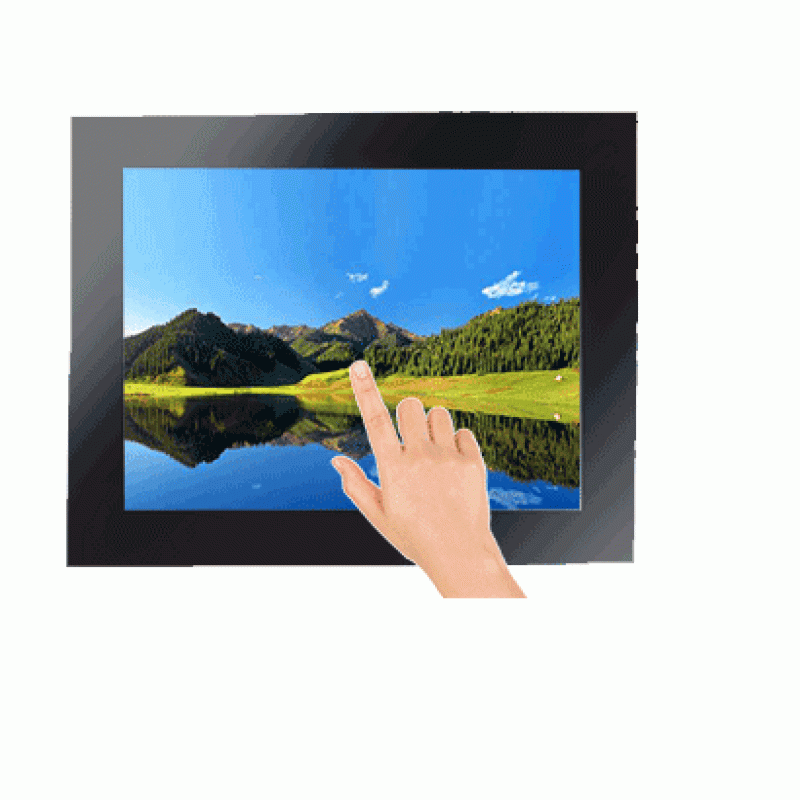 12.1″ industrial multi-touch monitor with capacitive touchscreen, VGA & HDMI input, wide voltage support, and multiple mounting options