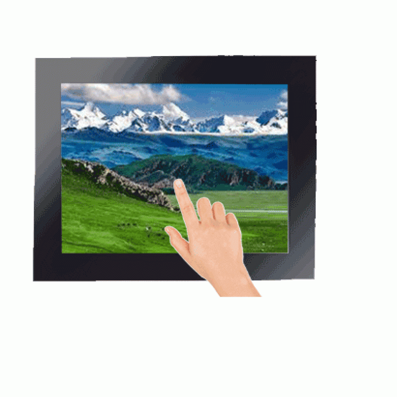 19″ industrial multi-touch monitor with capacitive touchscreen, VGA & HDMI input, wide voltage support, and multiple mounting options