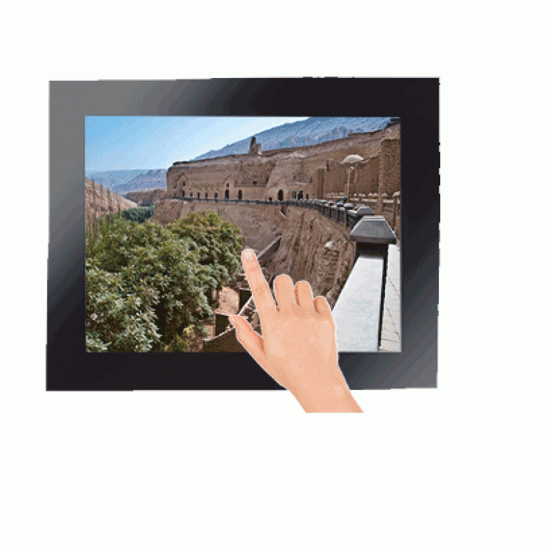 12.1″ industrial resistive touch monitor with VGA & HDMI input, wide voltage support, and multiple mounting options