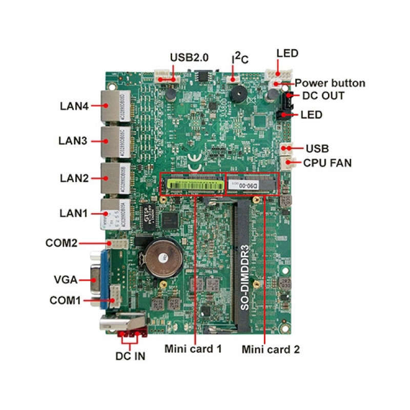 TWITTER 3I380D, Lex Twitter fanless chassis Barebone ,Lex MB 3I380D-D90 ( TT2516-00F-9670 ), Intel J1900 CPU, 4LAN, COM, HDMI, SODIMM