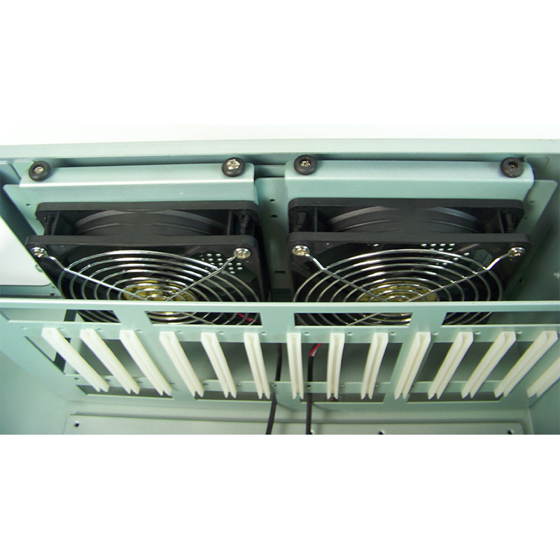 2 x 120mm DC--DC High speed Ball bearing 4 Pin PWM, Hot swappable fan(2 Ball) in rear ( see picture ), plus 1 x 80mm DC--DC High speed Ball bearing 4 Pin PWM fan(2 Ball) in Front ( see picture) ; front panel also possibile to built in 2 x 8 (or 6 ) cm fan;